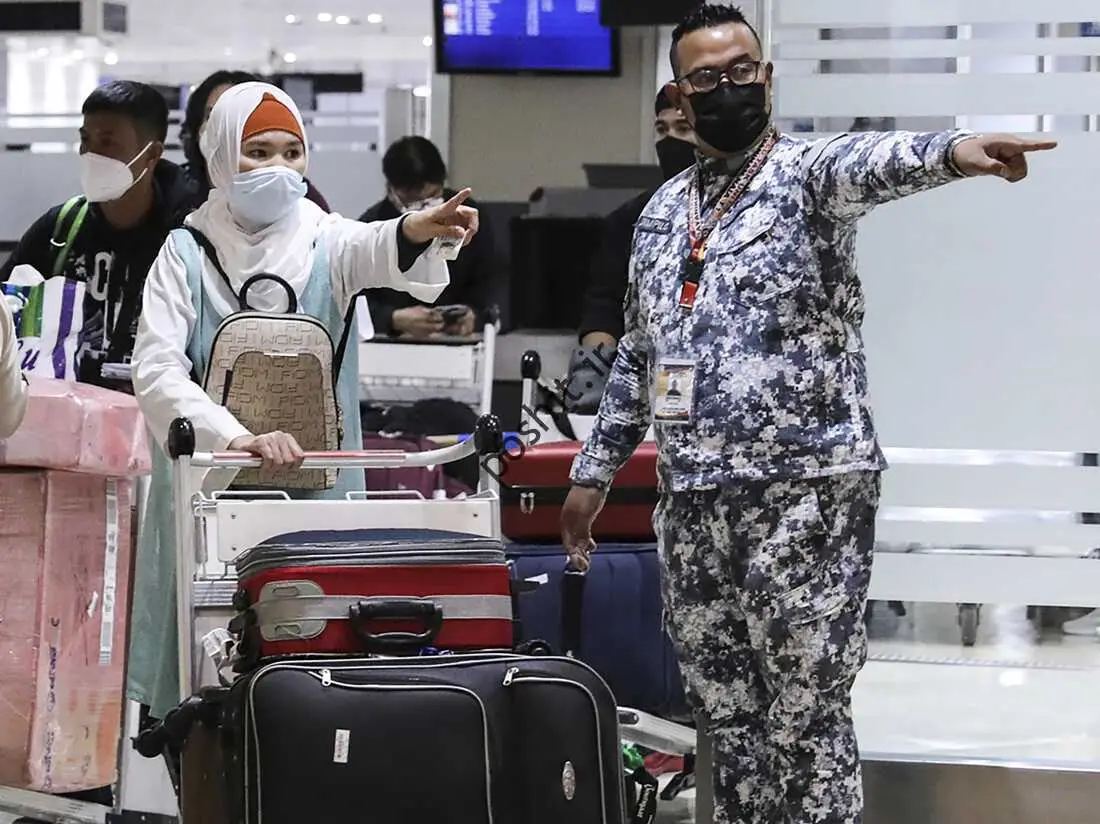 اعضای گارد ساحلی فیلیپین به مسافران هنگام رسیدن به فرودگاه بین المللی مانیل کمک می کنند. فیلیپین روز پنجشنبه ممنوعیت تقریباً 2 ساله ورود مسافران خارجی را لغو کرد زیرا افزایش نرخ ارز کاهش یافته است.